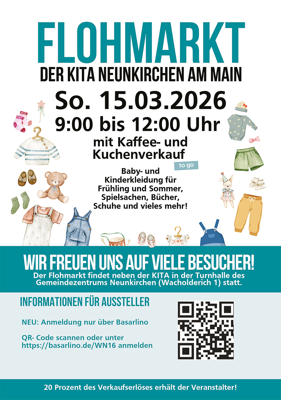 Flohmarkt findet neben der KITA in der Turnhalle des Gemeindezentrums Neunkirchen (Wacholderich 1) statt.